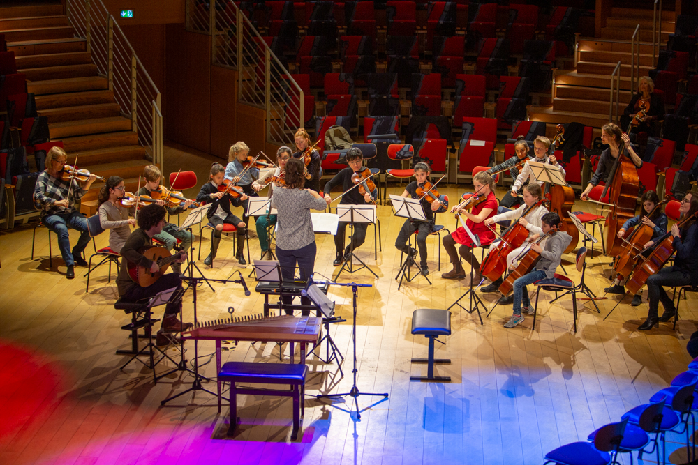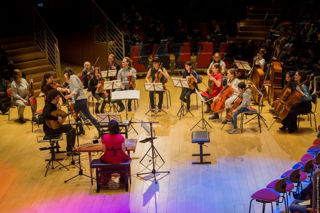 Am 11. und 12. März 2018 spielten Kinder von HANGARMUSIK zusammen mit Musikerinnen des Ensemble Modern unter großem Beifall der Konzertbesucher ihre ersten öffentlichen Konzerte im Pierre-Boulez-Saal Berlin.