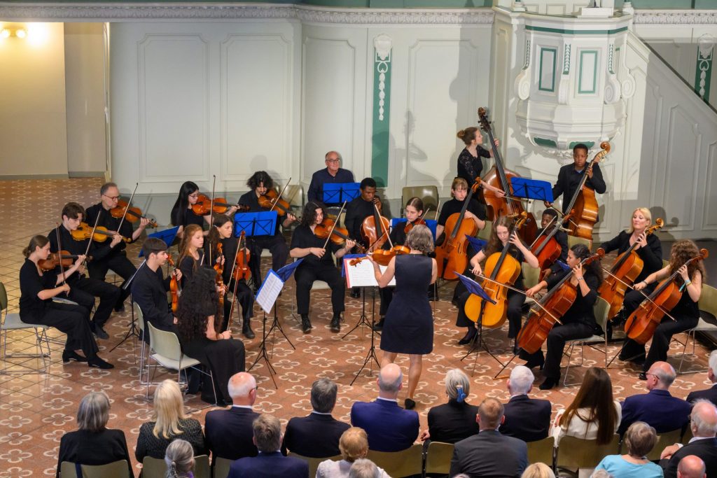 Bei der Preisverleihung spielte das Orchester HANGARMUSIK unter der Leitung von Leila Weber Werke von Jean-Baptiste Lully, Jean-Phillip Rameau und Gustav Mahler.
