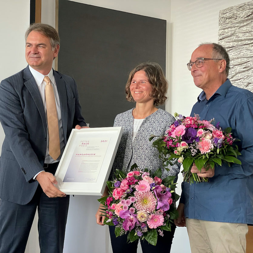 HANGARMUSIK wurde am 3. November 2021 in den Räumlichkeiten der Societät RAUE in Berlin mit dem erstmals verliehenen PETER RAUE PREIS geehrt.