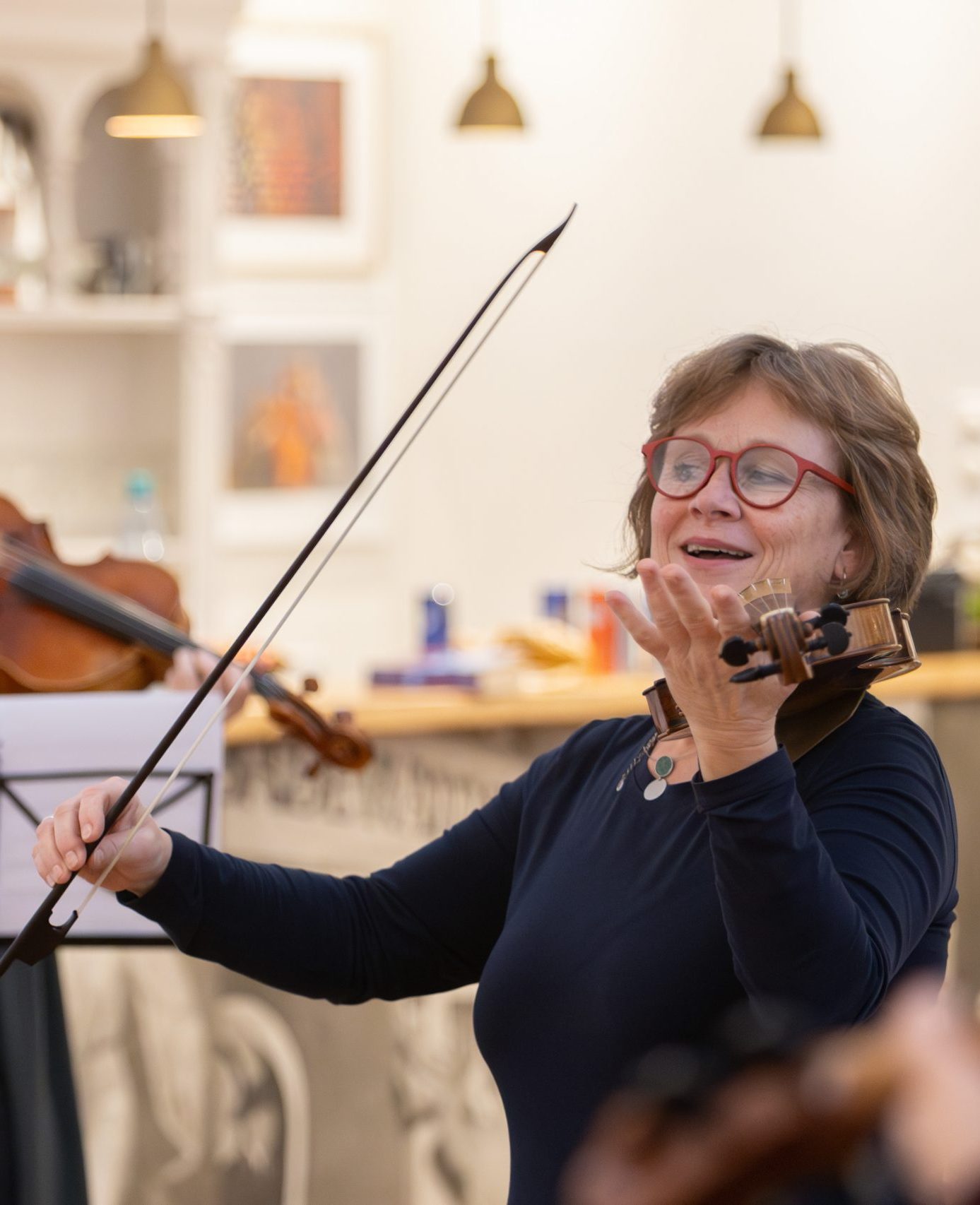 Brigitte Täubl (Geige) – Schon während ihres Studiums an der Grazer Musikhochschule interessierte sie sich für die barocke Spielweise auf der Violine und besuchte mehrere Meisterkurse in Innsbruck bei Ingrid Seifert. Ab 1987 vertiefte sie ihre Ausbildung in diese Richtung an der Scola Cantorum Basiliensis bei J. Schröder und Th. Hengelbrock. Von dort entstand der Kontakt zum Freiburger Barockorchester, wo sie seit über 30 Jahren Mitglied ist. Sie musiziert mit namhaften Künstlern wie Ivor Bolton, Rene Jacobs, Cecilia Bartoli, Jordi Savall, Thomas Quasthoff, N. Harnoncourt u.a. Gemeinsam mit Lorenz Duftschmid gründete sie 1989 das Ensemble Armonico Tributo, in dem sie als Konzertmeisterin und Kammermusikerin tätig ist.