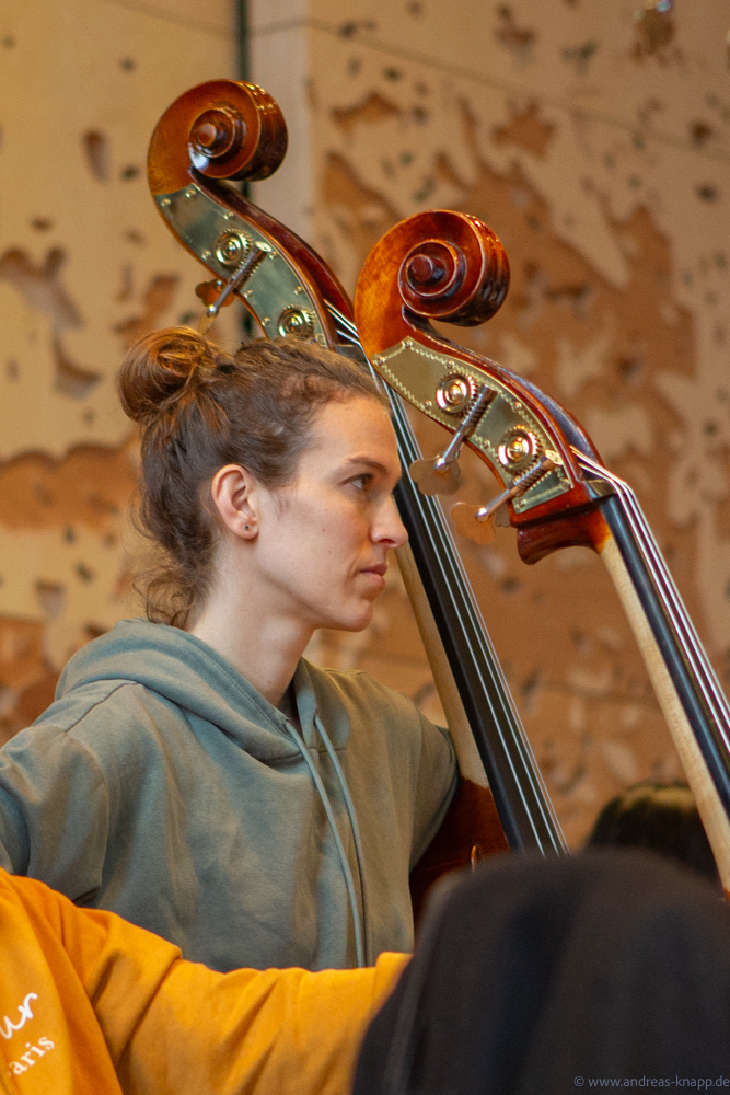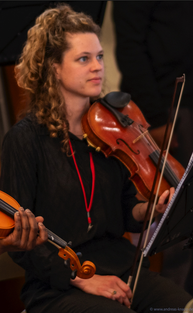 Seit Anfang 2024 ist Luzie Jehle Teil des Hangarmusik Teams und unterstützt Einsteiger*innen sowie zweite Geigen. Sie begeistert der Elan und die Spielfreue der jungen Menschen. Wie gut das Prinzip funktioniert, dass alle auch ohne jegliche Vorerfahrung mitspielen können, erstaunt sie immer wieder. Ein stetiges miteinander und voneinander Lernen beobachtet Luzie im ganzen Orchester. Als Sozialarbeiterin sieht sie, dass Hangarmusik einen wichtigen Teil im Ankommensprozess von jungen geflüchteten Menschen ausmacht. Ein Zugehörigkeitsgefühl und die Bereicherung durch das musikalische Miteinander tragen zu diesem Prozess positv bei.